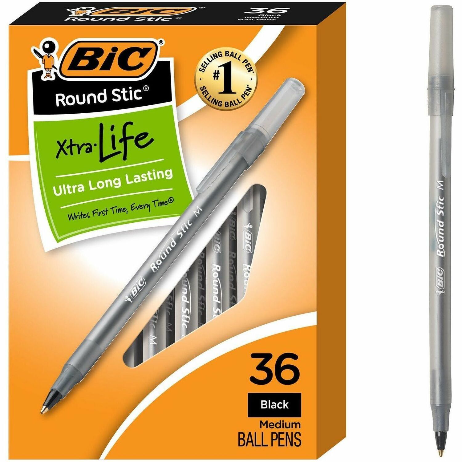 BIC Round Stic Xtra Life Ball Point Pen, Black, 36 Pack