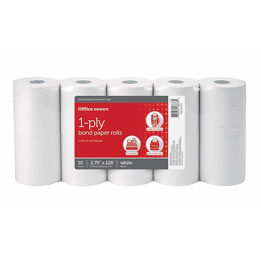 Office Depot® Brand 1-Ply Bond Paper Rolls, 2-3/4" x 128', White, Pack Of 10
