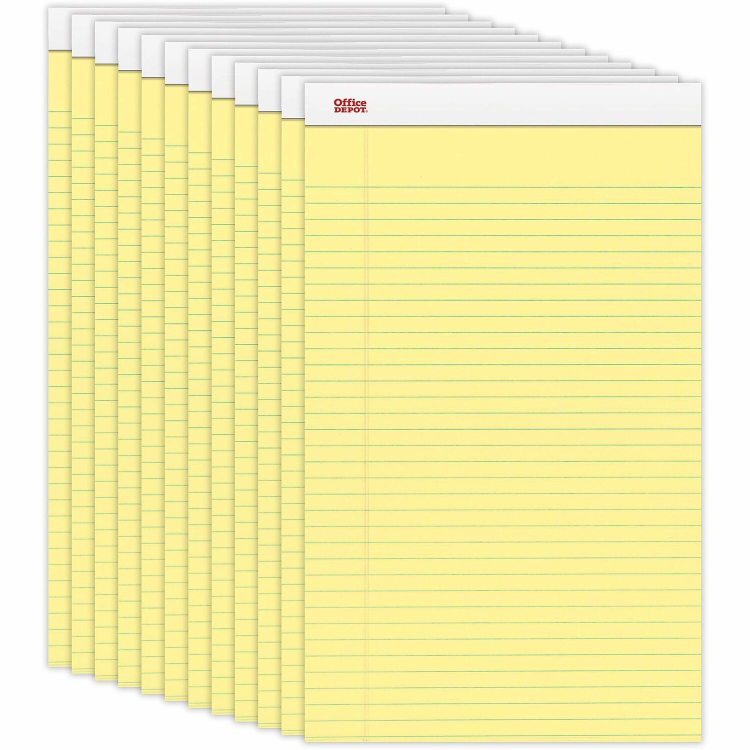 Office Depot® Brand Writing Pads, 8 1/2" x 14" , Legal/Wide Ruled, 50 Sheets, Canary, Pack Of 12 Pads