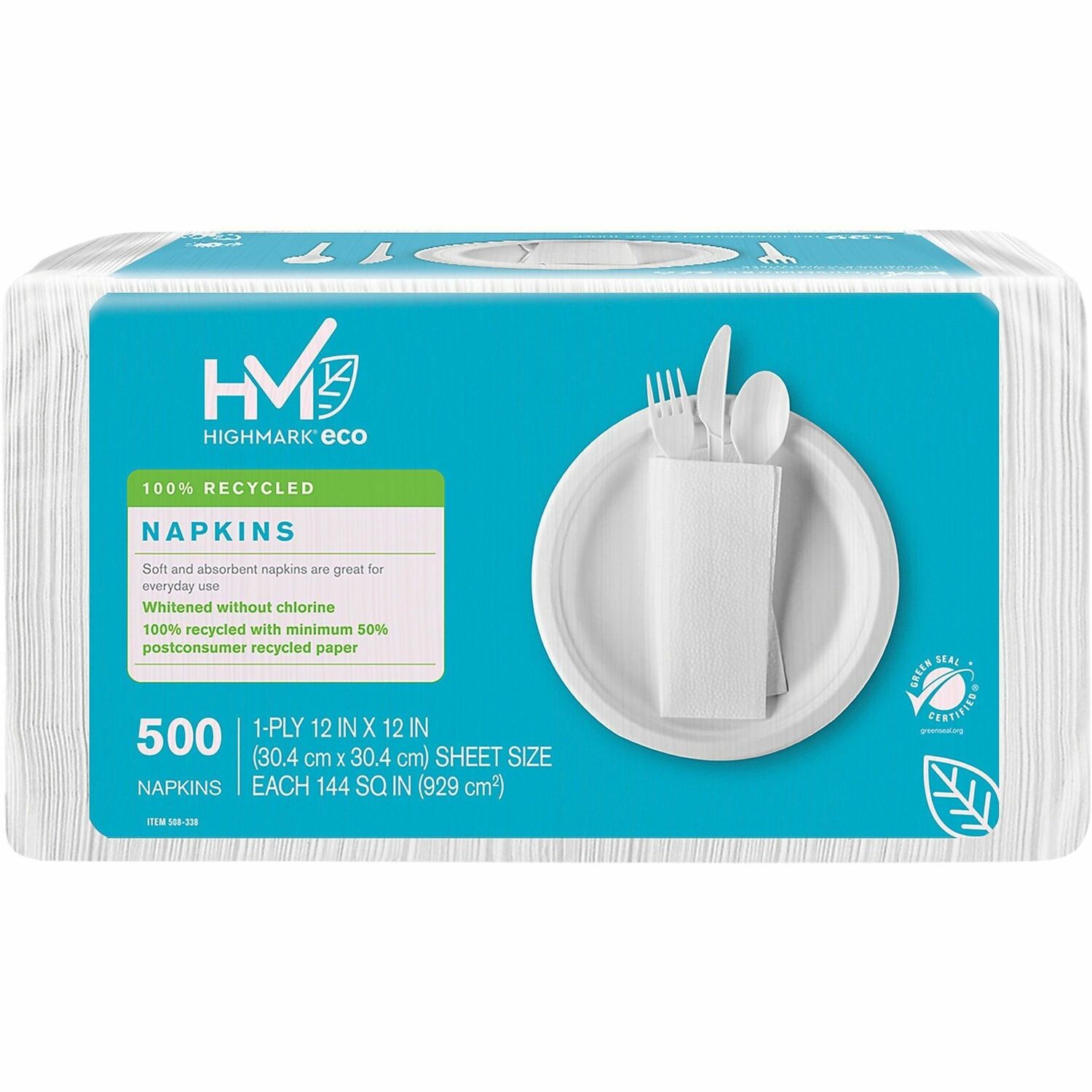 Highmark® ECO Napkins, 12" x 12" , 100% Recycled, White, Pack Of 500
