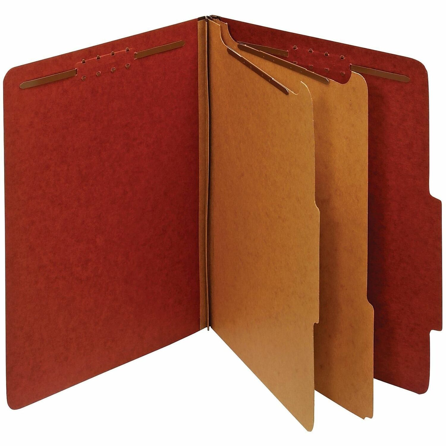 Office Depot®Brand Pressboard Classification Folders With Fasteners, 2 Dividers, Letter Size (8-1/2"x11"), 2" Expansion, 100% Recycled, Red, Box Of 10