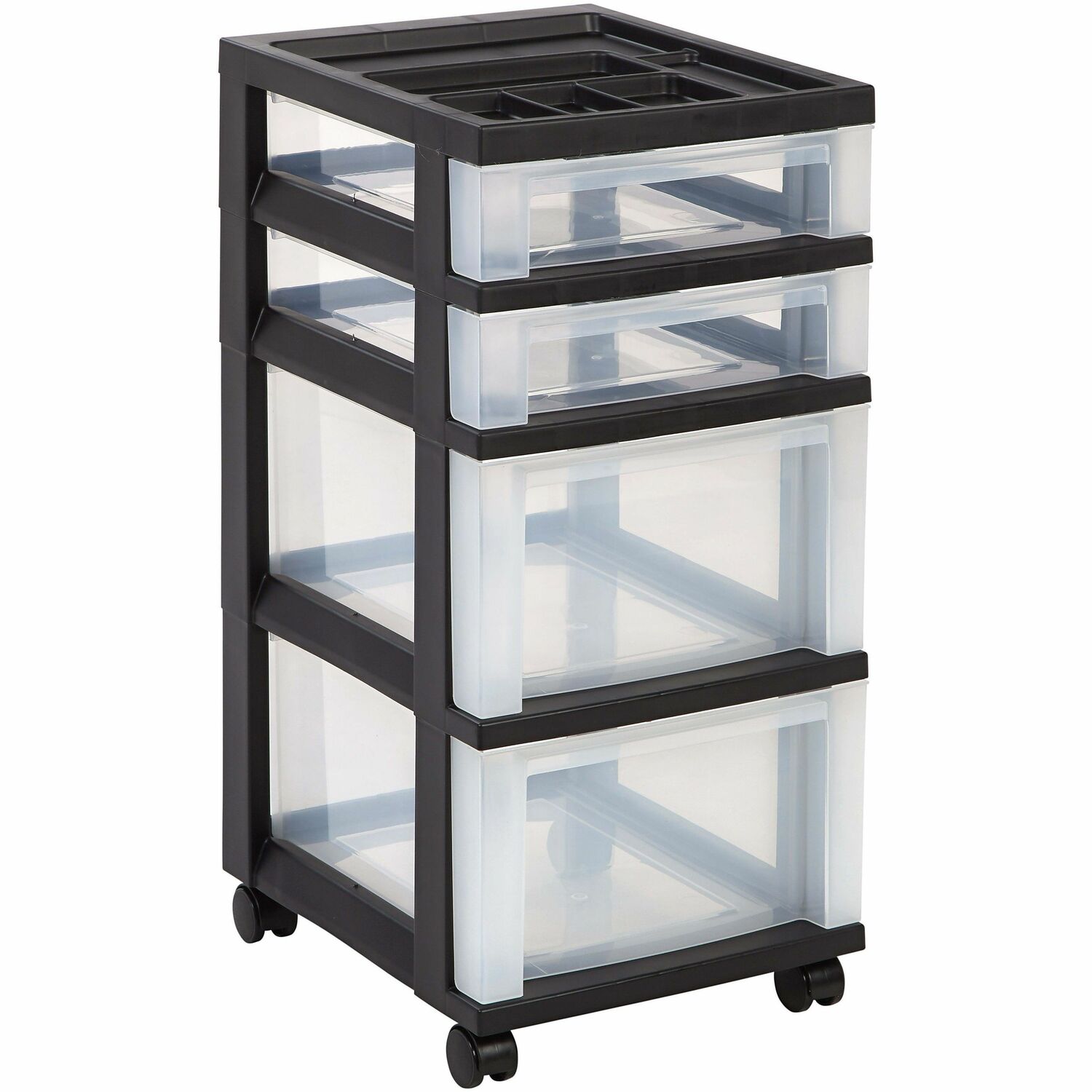 Plastic 4-Drawer Storage Cart, 26 7/16" x 12 1/16" x 14 1/4" , Black