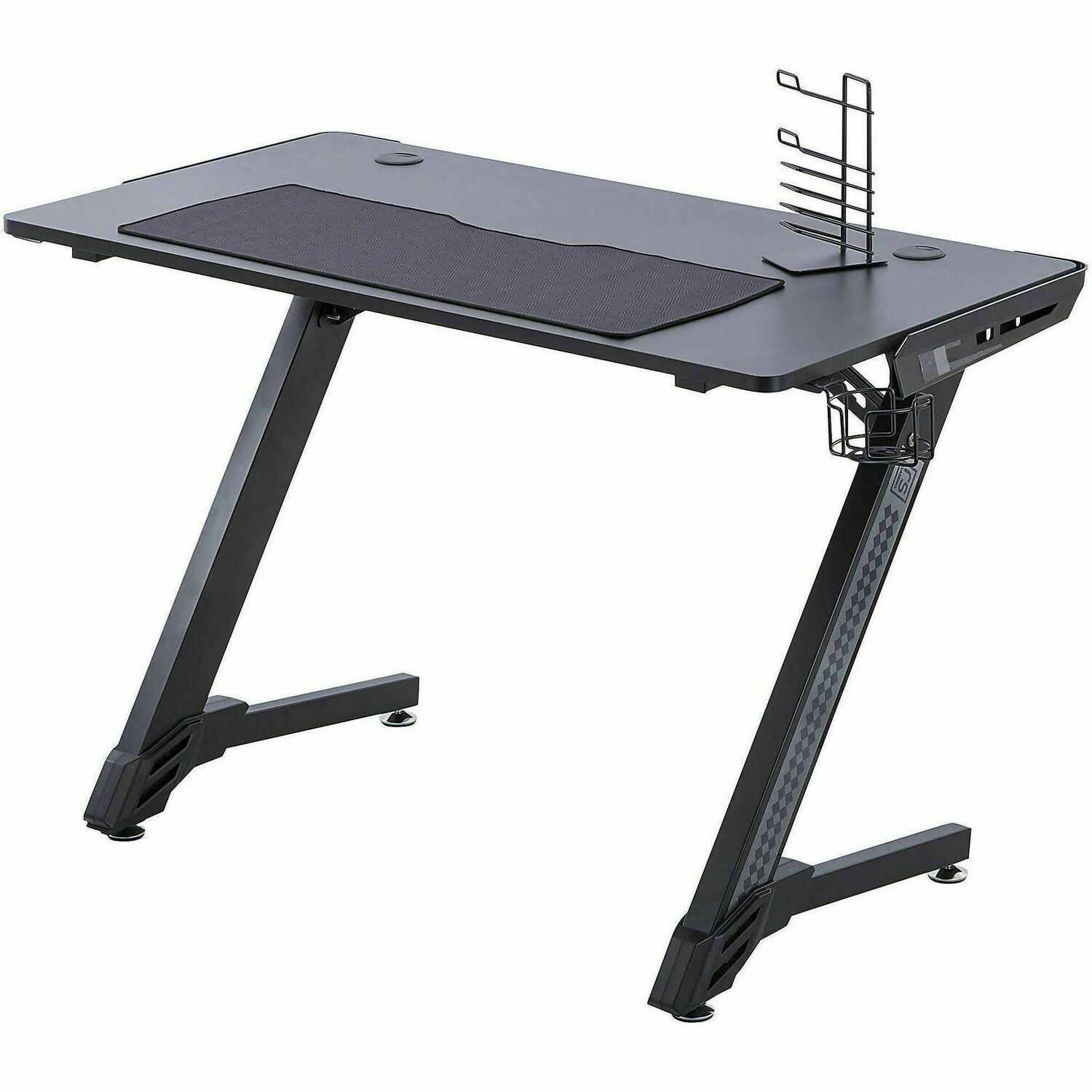 Whether you're a fan of FPS or prefer the epic adventures or RPGs, this RS Gaming™ Venno 45"W Gaming Desk has the space you need for your gaming setup. The carbon-fiber textured surface offers rugged durability, and the 2 grommets help you keep cables and cords out of the way and organized. You can keep your gaming essentials within reach with the controller stand, headphone hook and mouse pad. Plus, a cup holder is available to keep your favorite beverage nearby.