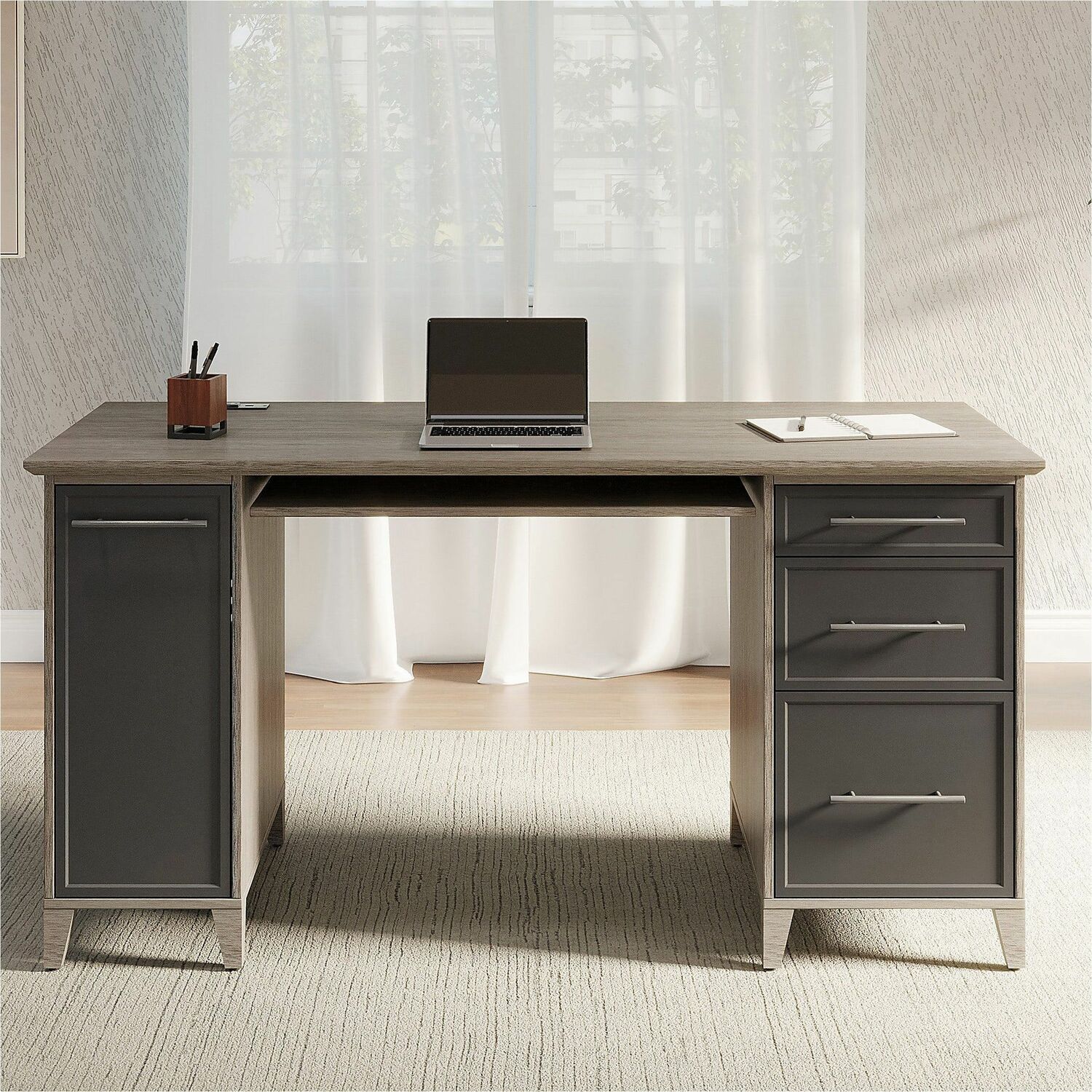 Refresh your workspace with the Realspace Koru Straight Computer desk with drawers that combines functionality, style and convenience with integrated power and wireless charging. Reduce clutter on your desktop using the convertible CPU storage with ventilation, monitor mount grommet, sleek cable management system above and below your work surface and a slide-out keyboard tray. Keep everything you need at your fingertips using the full-extension supply and legal/letter file storage. The desk with charging station is crafted with engineered wood materials, a soft-close storage door and brushed metal handles for long-lasting durability with everyday use.