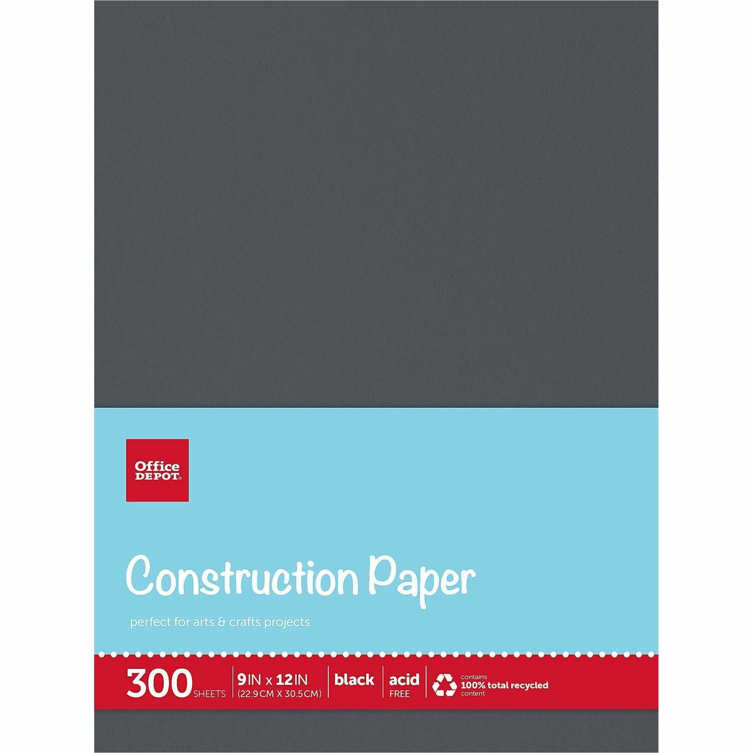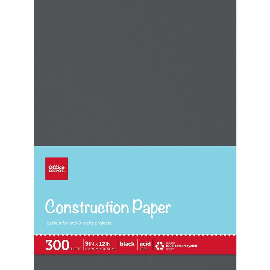 Office Depot® Brand Construction Paper, 9" x 12" , 100% Recycled, Black, Pack Of 300 Sheets