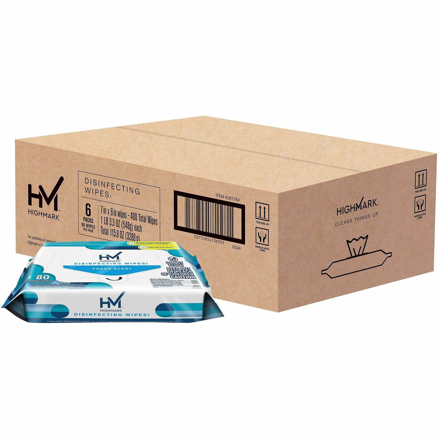 Highmark® Disinfecting Wipes, Fresh Scent, 7" x 8" , 80 Wipes Per Flat Pack, 100% Recycled, White, Case Of 6 Packs